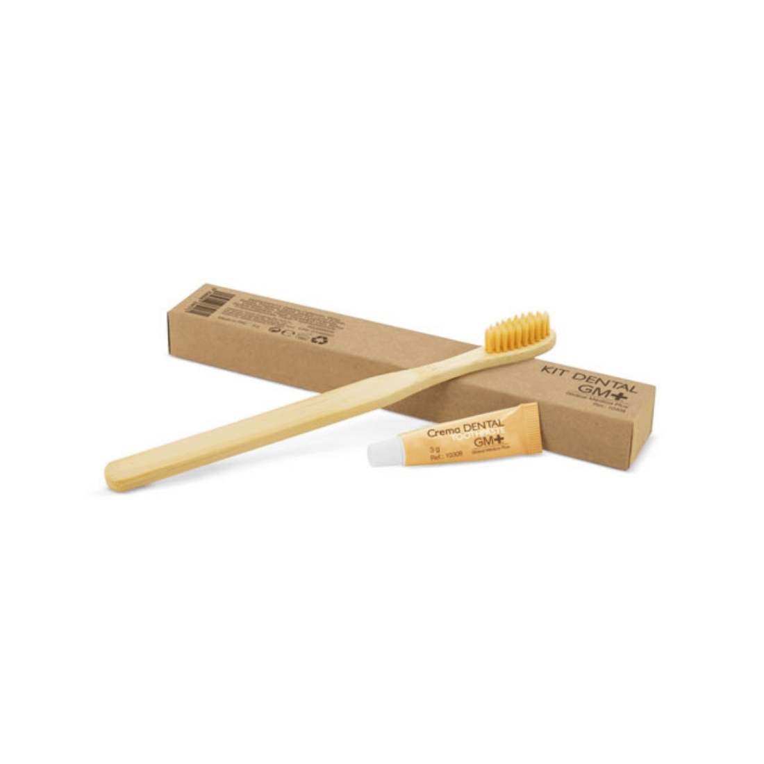 Confezione da 50 unità di kit dentale composto da spazzolino e dentifricio. Lo spazzolino è in bambù e il dentifricio contiene 3gr.