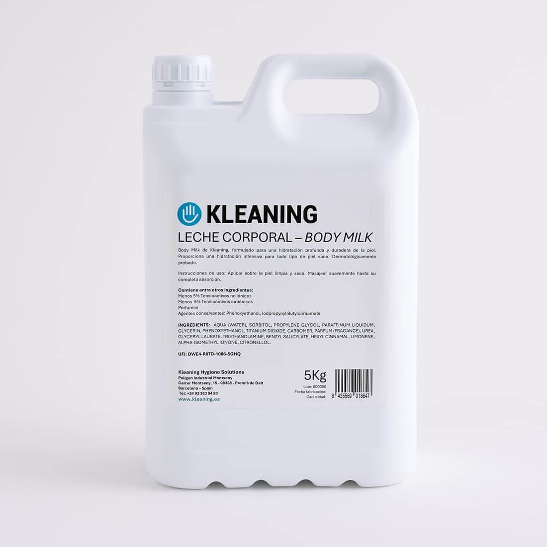 Su Kleaning vogliamo offrire i migliori prodotti affinché possiate fornirli ai vostri ospiti e rendere così il loro soggiorno molto più confortevole. Questo contenitore da 5L contiene latte per il corpo latte per il corpo.