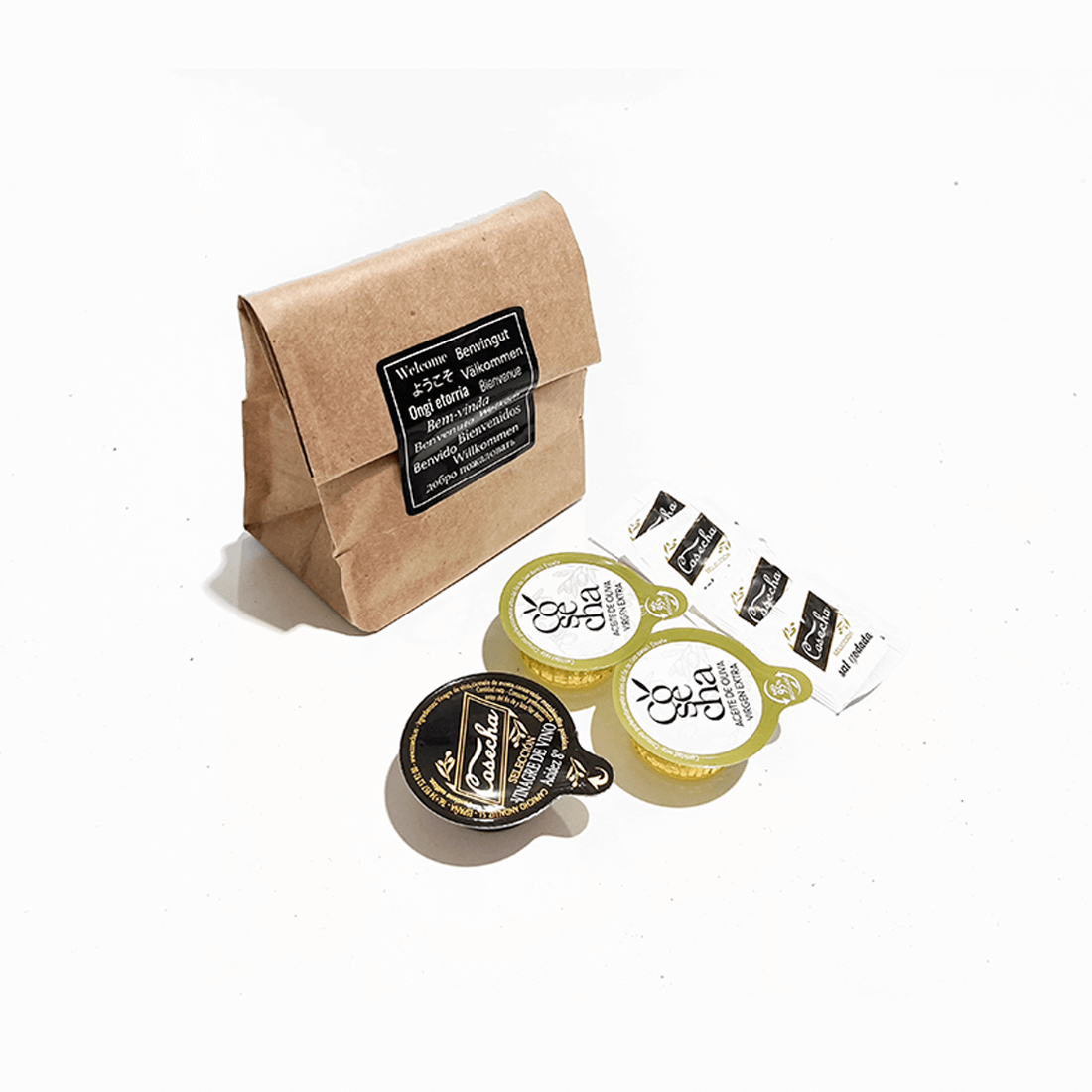 Questo kit di benvenuto contiene prodotti alimentari e di cucina. Con i prodotti contenuti nel kit, i vostri ospiti potranno sfruttare al massimo la cucina del vostro alloggio, guadagnando in comfort e attenzione. Grazie alle dosi omaggio di olio, aceto e sale, potranno coprire il loro fabbisogno iniziale per cucinare, preparare un caffè o uno spuntino.